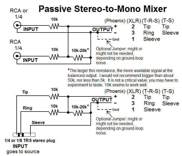 See also https://qscprod.force.com/selfhelpportal/s/article/How-to-Connecting-stereo-outputs-to-mono-input