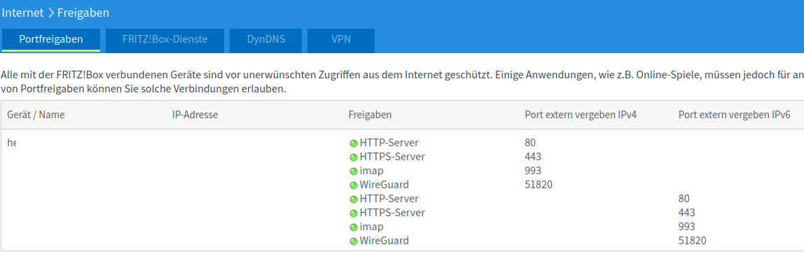 Fritzbox Portfreigaben