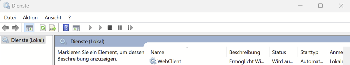 Wenn der Web-Suche-Dienst nicht gestartet ist, endet der “net use” Befehl mit einem Fehler 67 “Der Netzwerkname wurde nicht gefunden.”