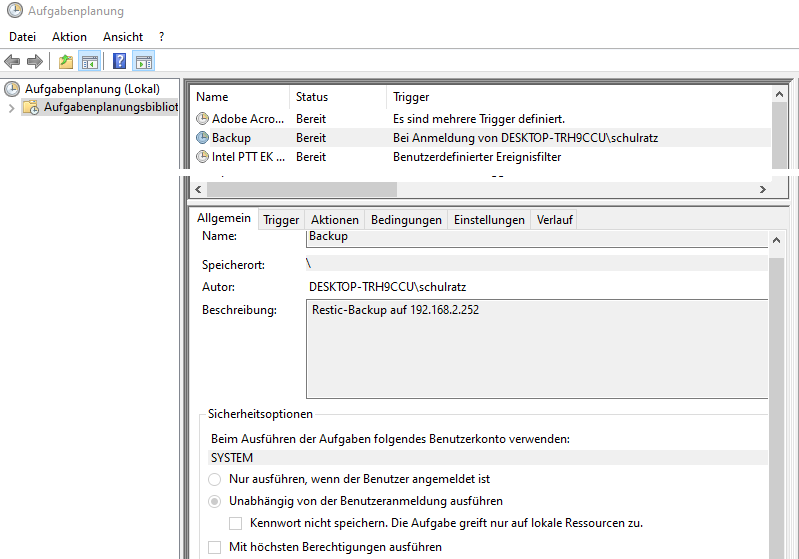 Windows-Rechner mit Restic sichern