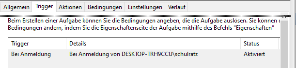 Die Aufgabenplanung braucht Unterstützung von einer cmd/bat-Datei, um sicherzustellen, dass das Backup nur einmal täglich ausgeführt wird.
